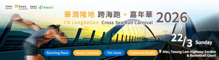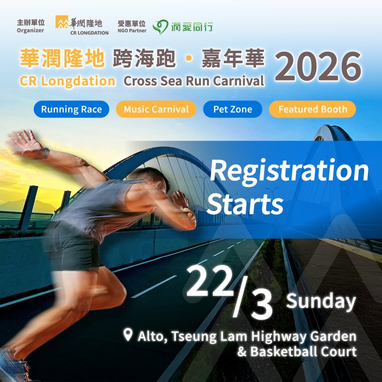 Get ready! The CR Longdation Cross Sea Run Carnival 2026 will take place in grand style on March 22, 2026! This event also incorporates a charity element — after deducting necessary administrative expenses, all proceeds will be donated to “Long Caring”, supporting meaningful community initiatives hand in hand.