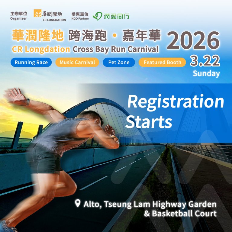 Get ready! The CR Longdation Cross Bay Run Carnival 2026 will take place in grand style on March 22, 2026! This event also incorporates a charity element — after deducting necessary administrative expenses, all proceeds will be donated to “Long Caring”, supporting meaningful community initiatives hand in hand.